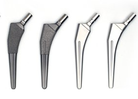 Les tiges de hanche sans CIMENT sont généralement en titane. Il n’y a pas d’allergies ou d’intolérances connues ici. À l'aide d'un revêtement pulvérisé au plasma de titane et d'un revêtement de phosphate de calcium, l'os se développe sur la tige au cours des premières semaines suivant l'opération.