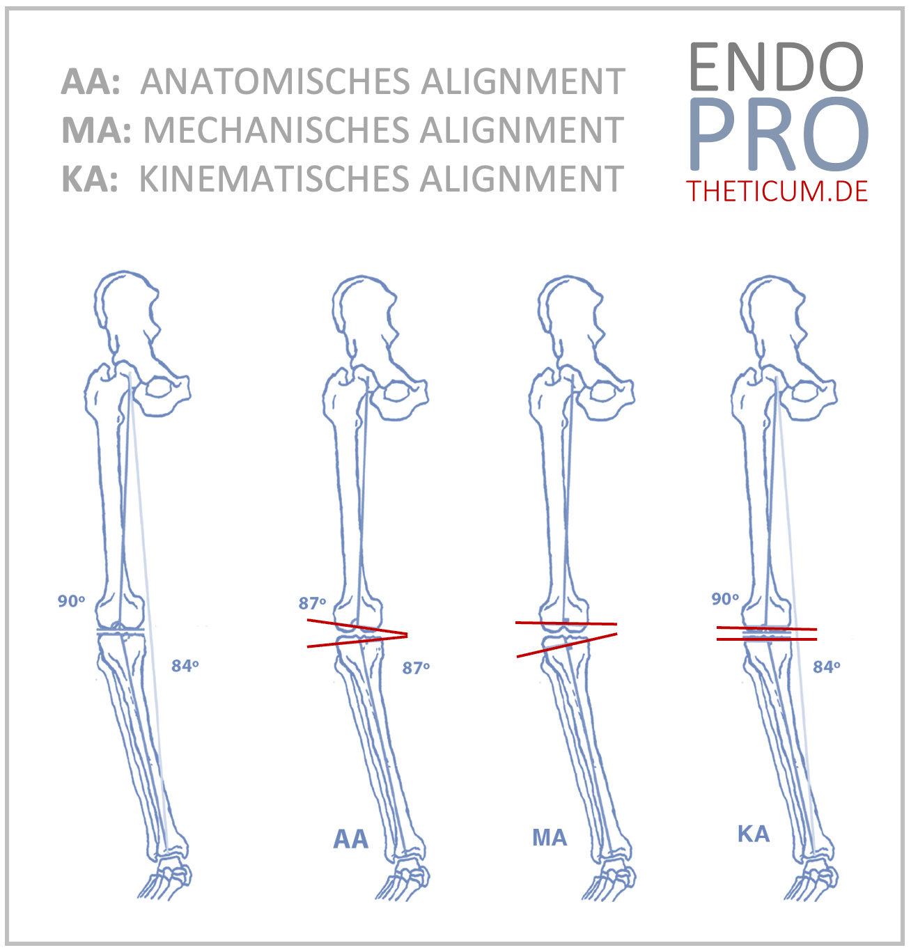 Depending on anatomical conditions and individual misalignment, knee prostheses are now aligned according to different principles: